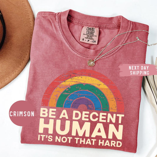 Comfort Colors® LGBT Heart Retro Be A Decent Human It’s Not That Hard T-Shirt, Inclusion Matters Shirt, Equality Advocate Shirt