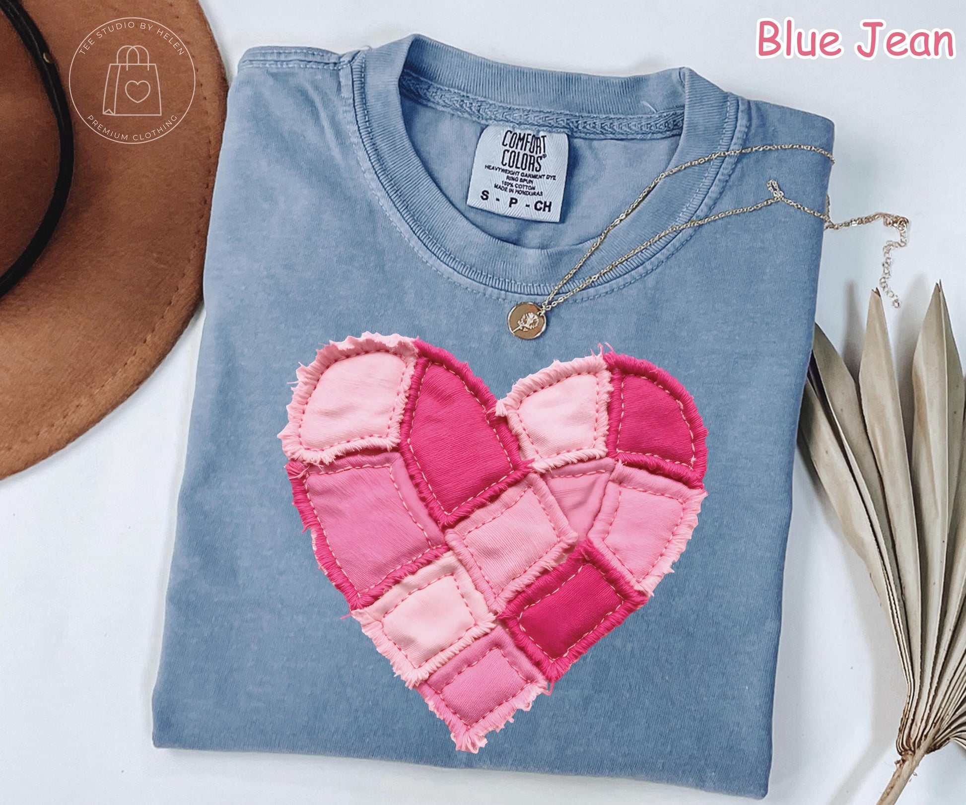 Comfort Colors® Faux Patchwork Heart Shirt, Valentines Day Shirt, Pink Heart Shirt, Valentine Gift for Her, Coquette Valentine Women's Shirt