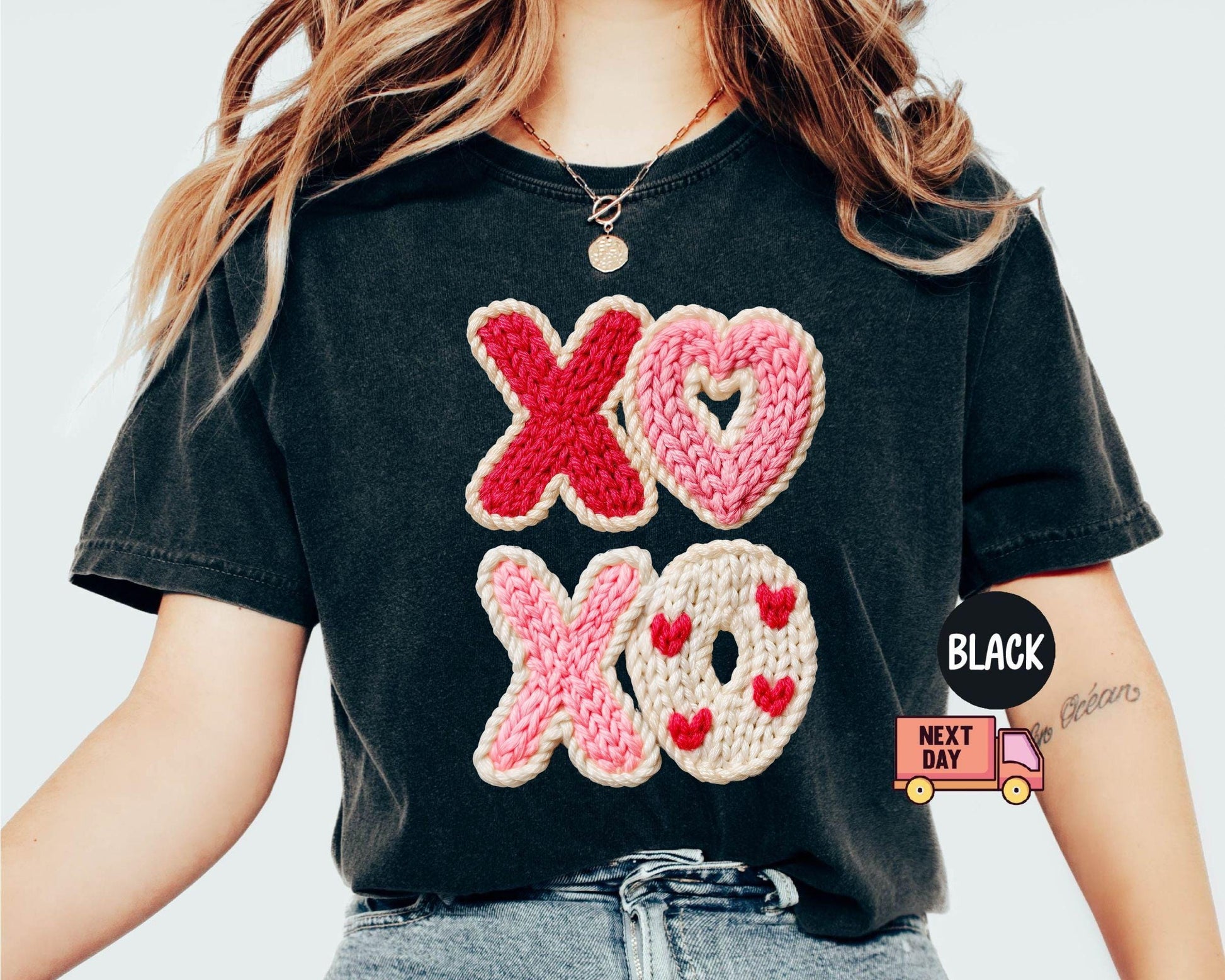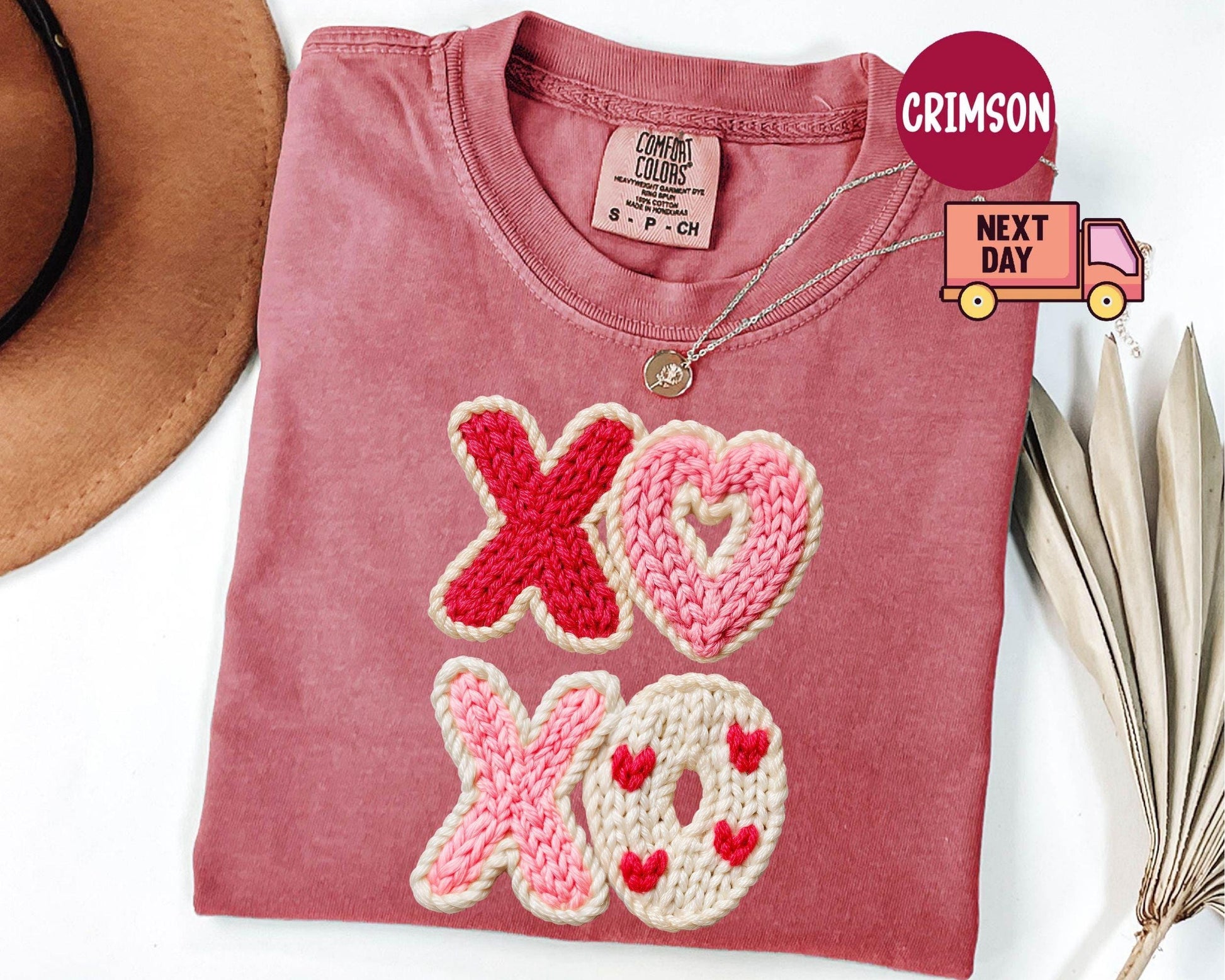 Comfort Colors® Faux Yarn XOXO Shirt, Coquette Bow Valentines T-Shirt, Valentines Day Shirt, Womens Valentine Shirt, Valentine's Day Gift